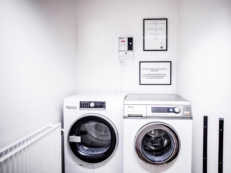 You can wash your clothes in our laundryroom, where you will find a washing machine and a dryer. Tokens can be bought in the reception.