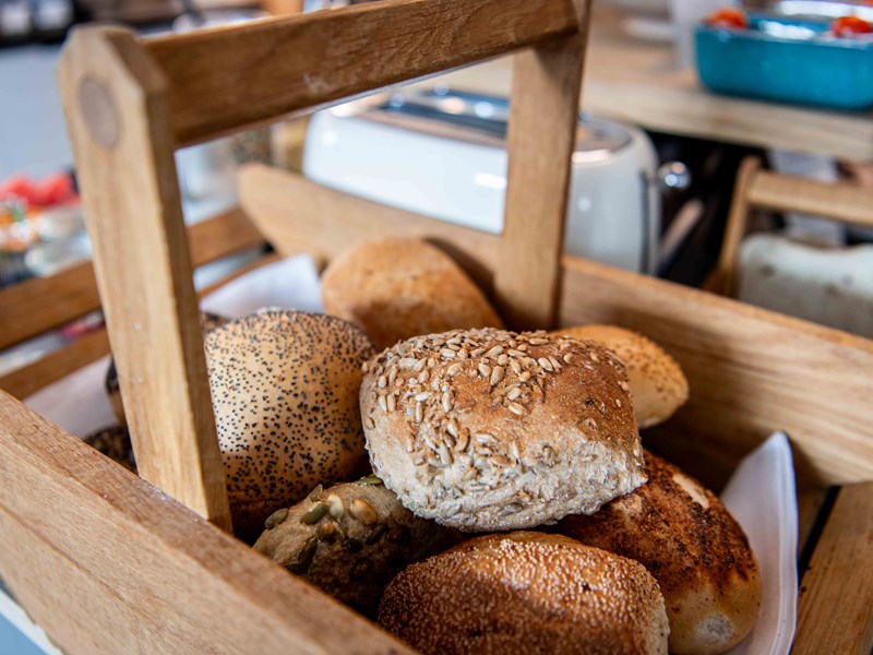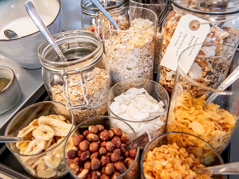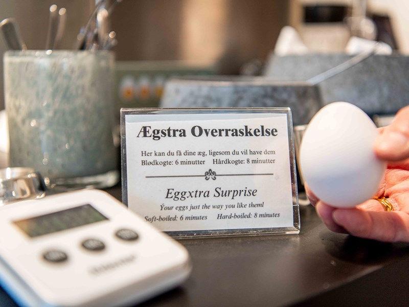 Our breakfast buffet is seasonally inspired, which means that we continually add to it. Should you e.g. are gluten allergic or lactose intolerant, we have other options for you. We serve almond drink as a lactose-free (and environmentally friendly) alternative to traditional milk. Stone Age bread or gluten-free buns are also a substitute for normal buns or French bread. If you wish to bring your own food (e.g. French bread or milk) due to allergies, you are of course welcome to do so.