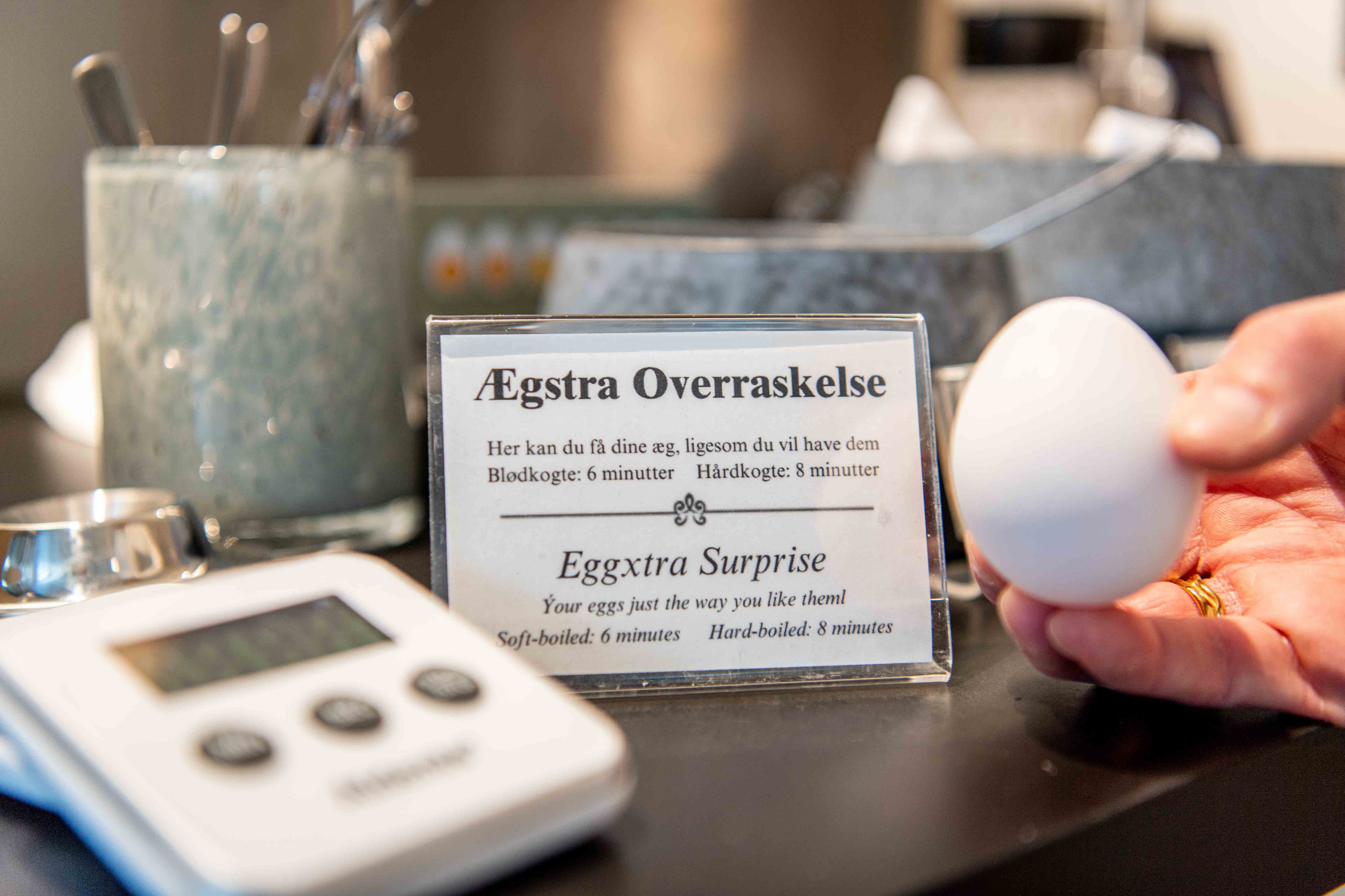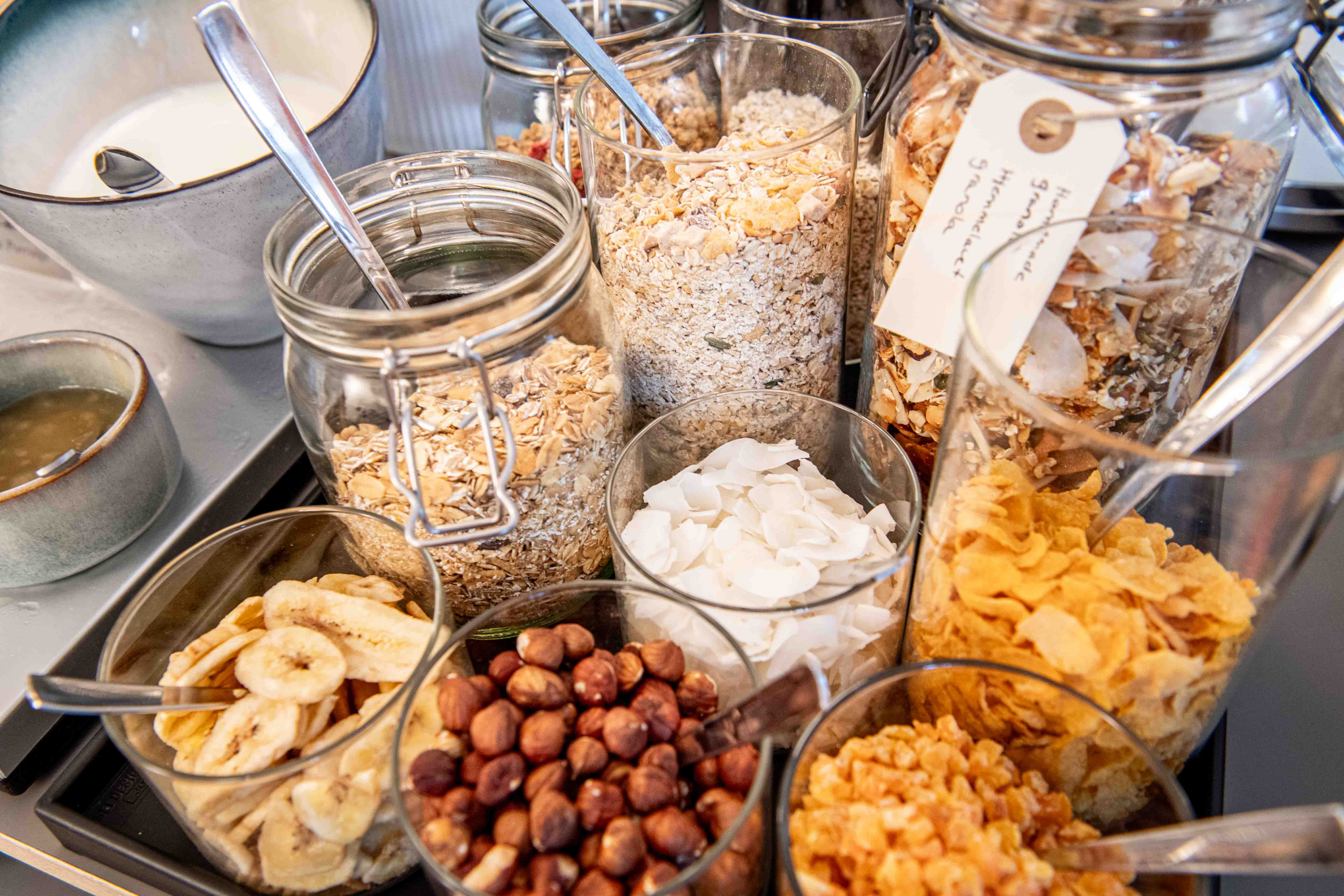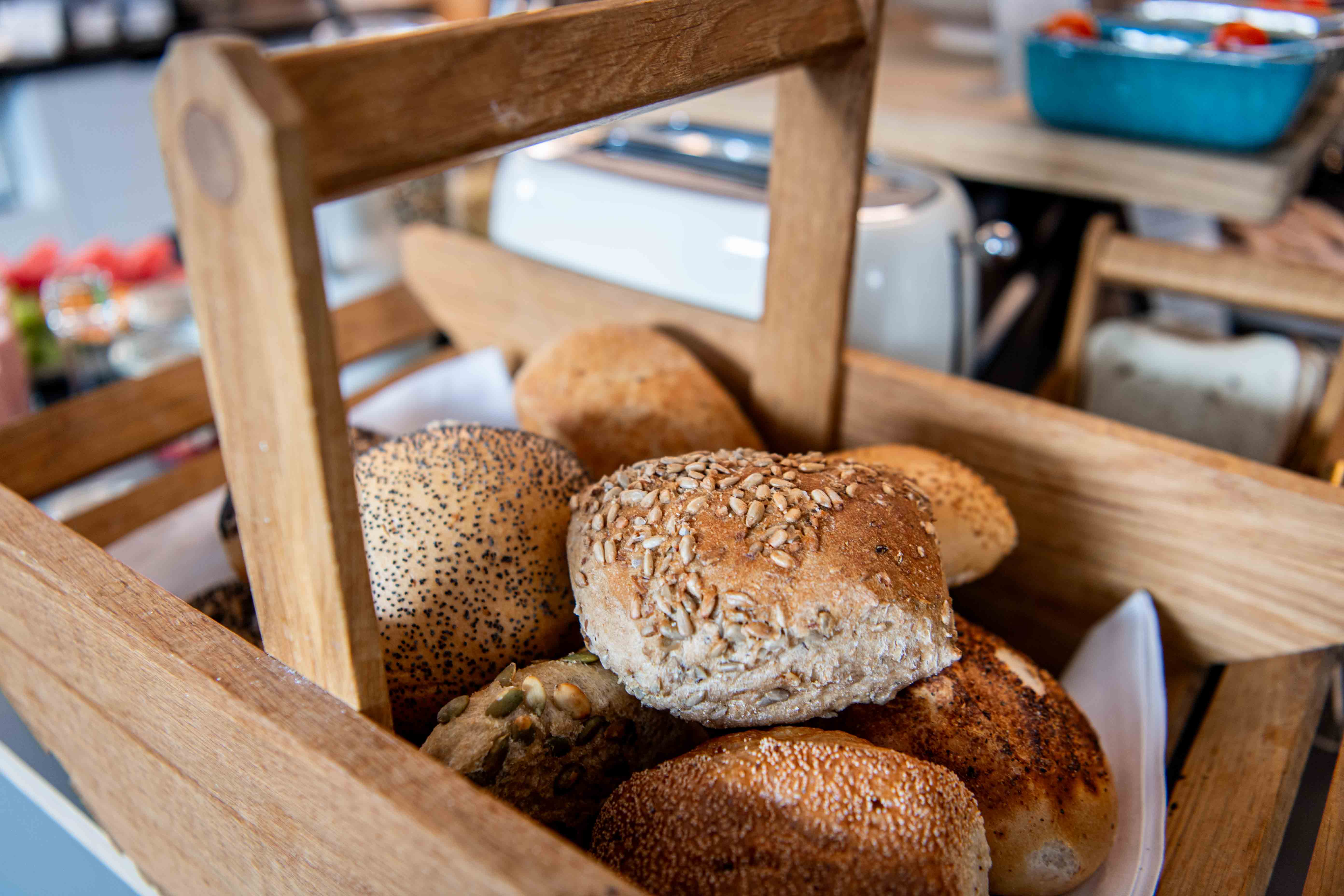 Our breakfast buffet is seasonally inspired, which means that we continually add to it. Should you e.g. are gluten allergic or lactose intolerant, we have other options for you. We serve almond drink as a lactose-free (and environmentally friendly) alternative to traditional milk. Stone Age bread or gluten-free buns are also a substitute for normal buns or French bread. If you wish to bring your own food (e.g. French bread or milk) due to allergies, you are of course welcome to do so.