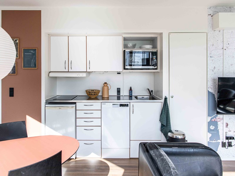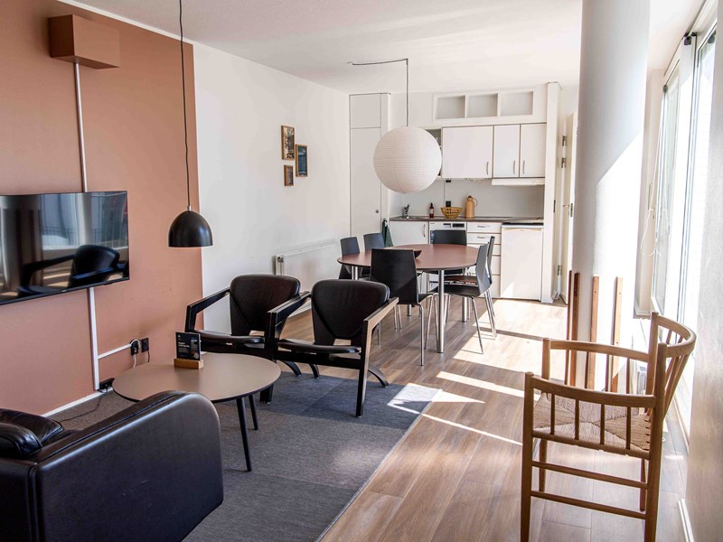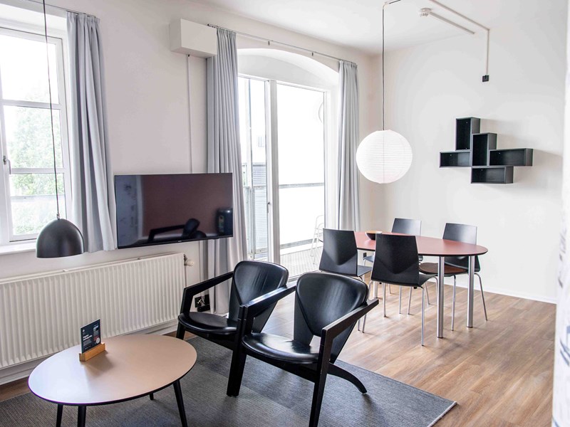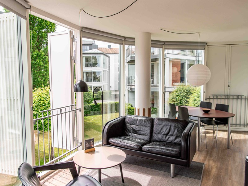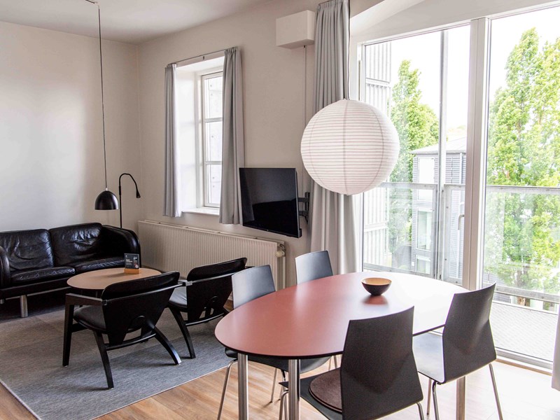 Take place in the green oasis. Our hotel apartments facing the courtyard have a delightful view of the green and cozy courtyard. Here you can get a piece of nature in the middle of Kolding city.