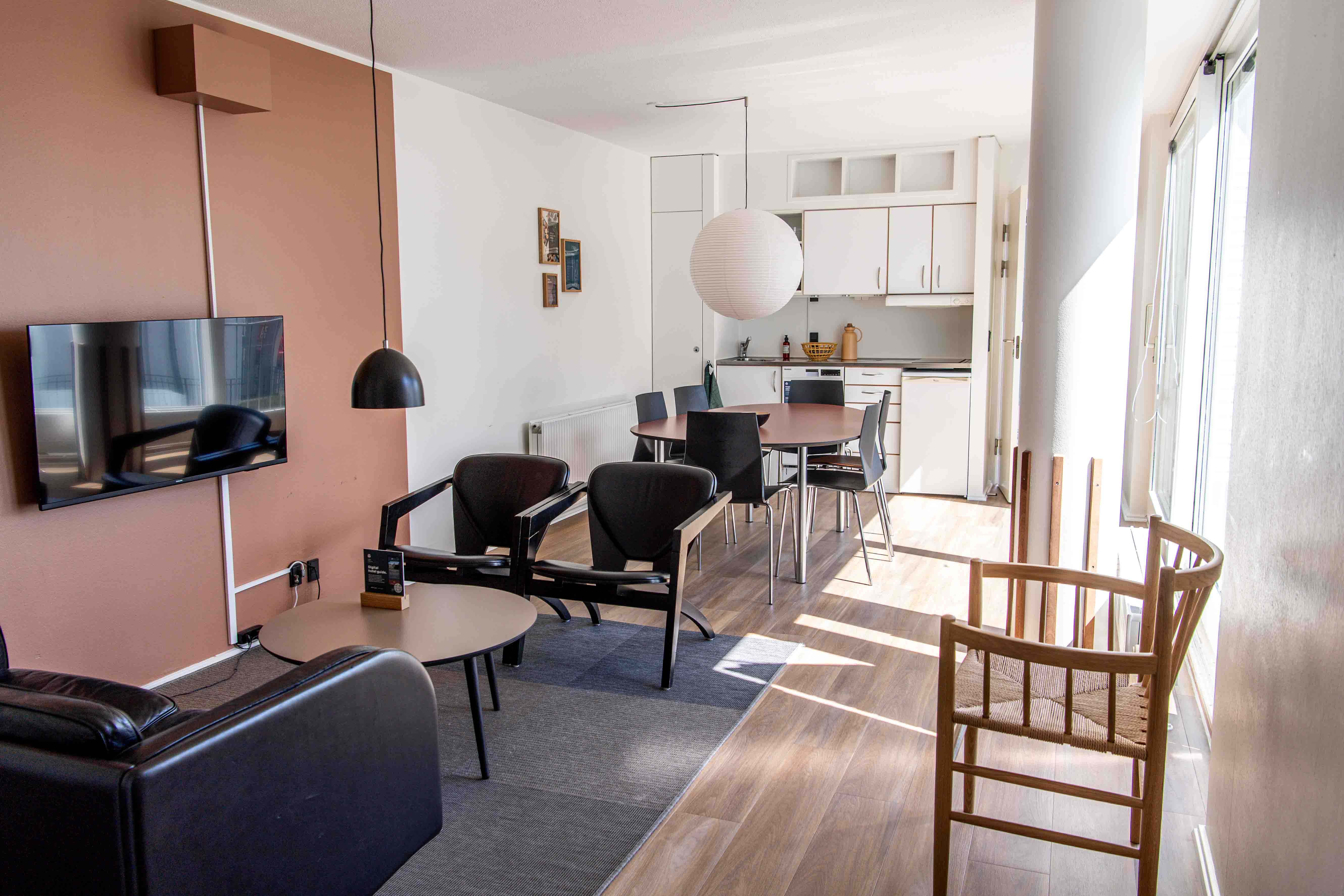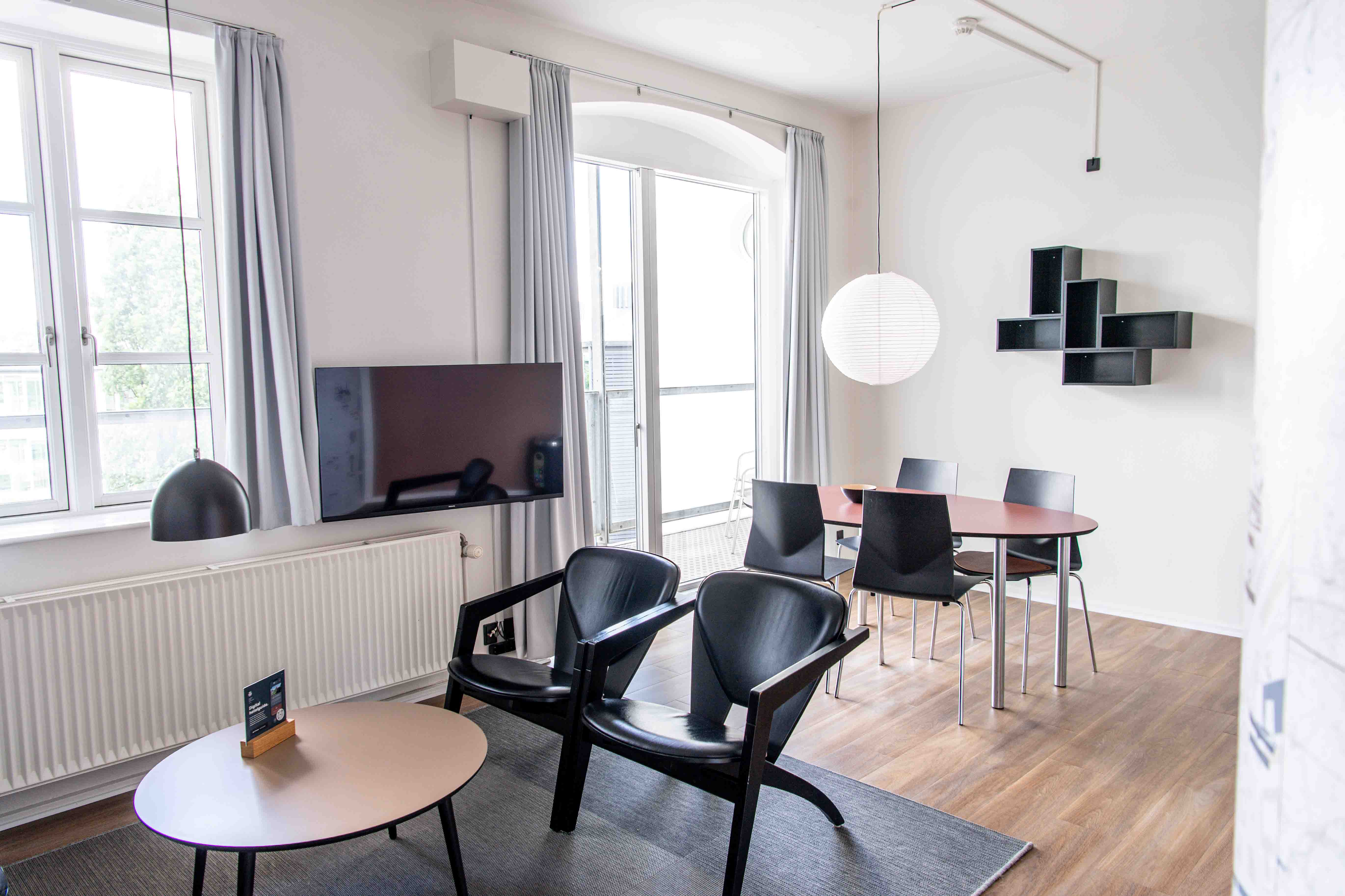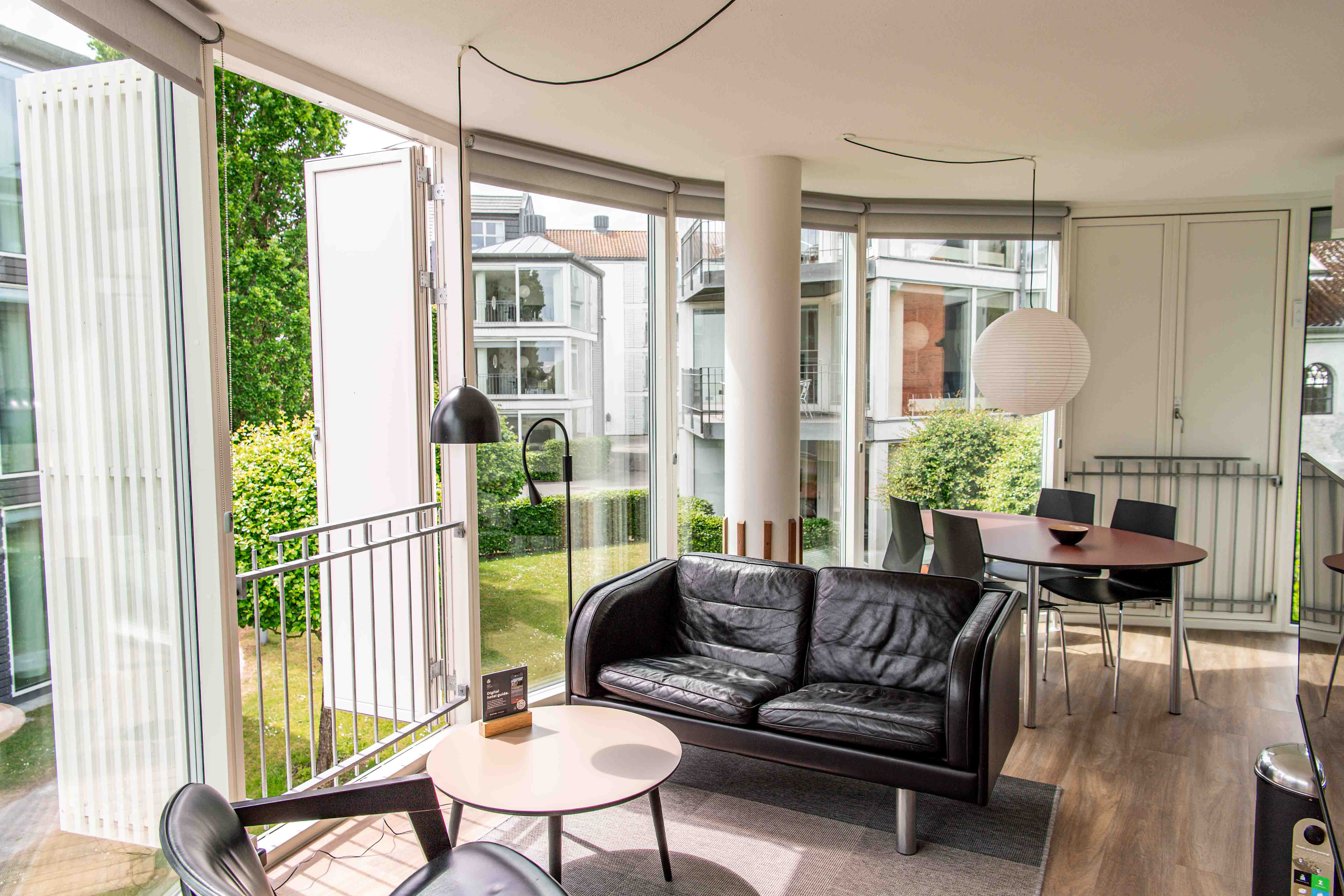 Take place in the green oasis. Our hotel apartments facing the courtyard have a delightful view of the green and cozy courtyard. Here you can get a piece of nature in the middle of Kolding city.